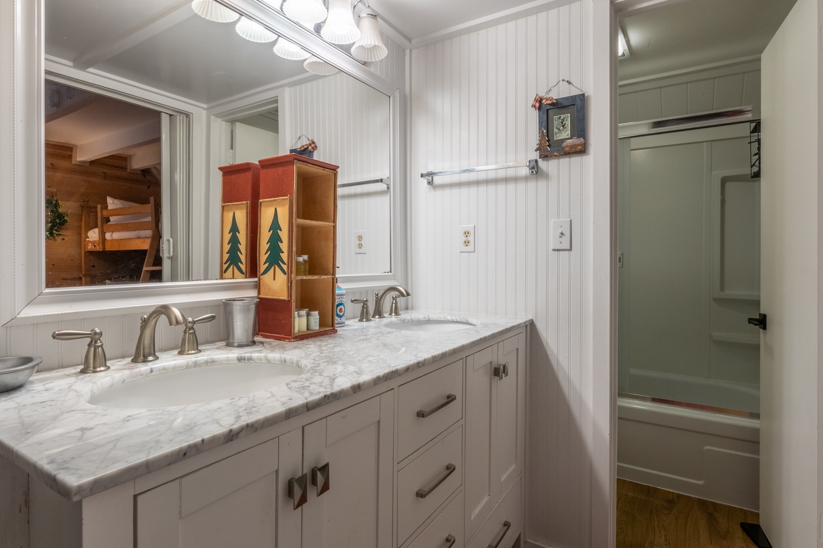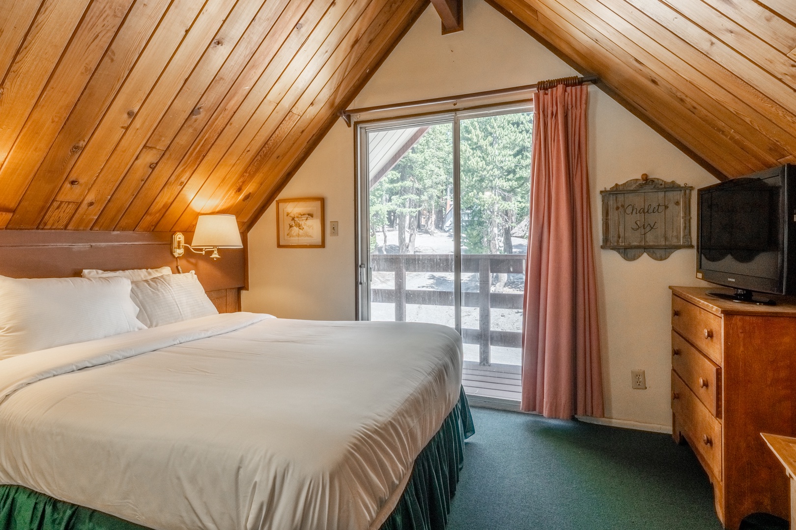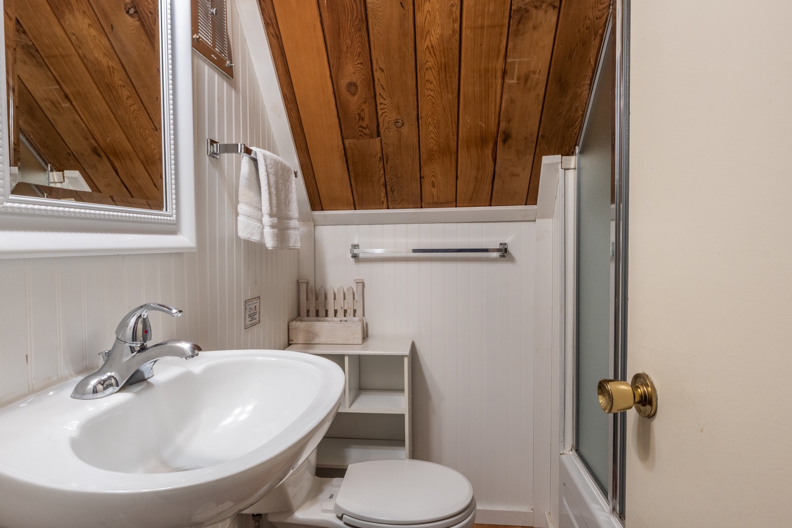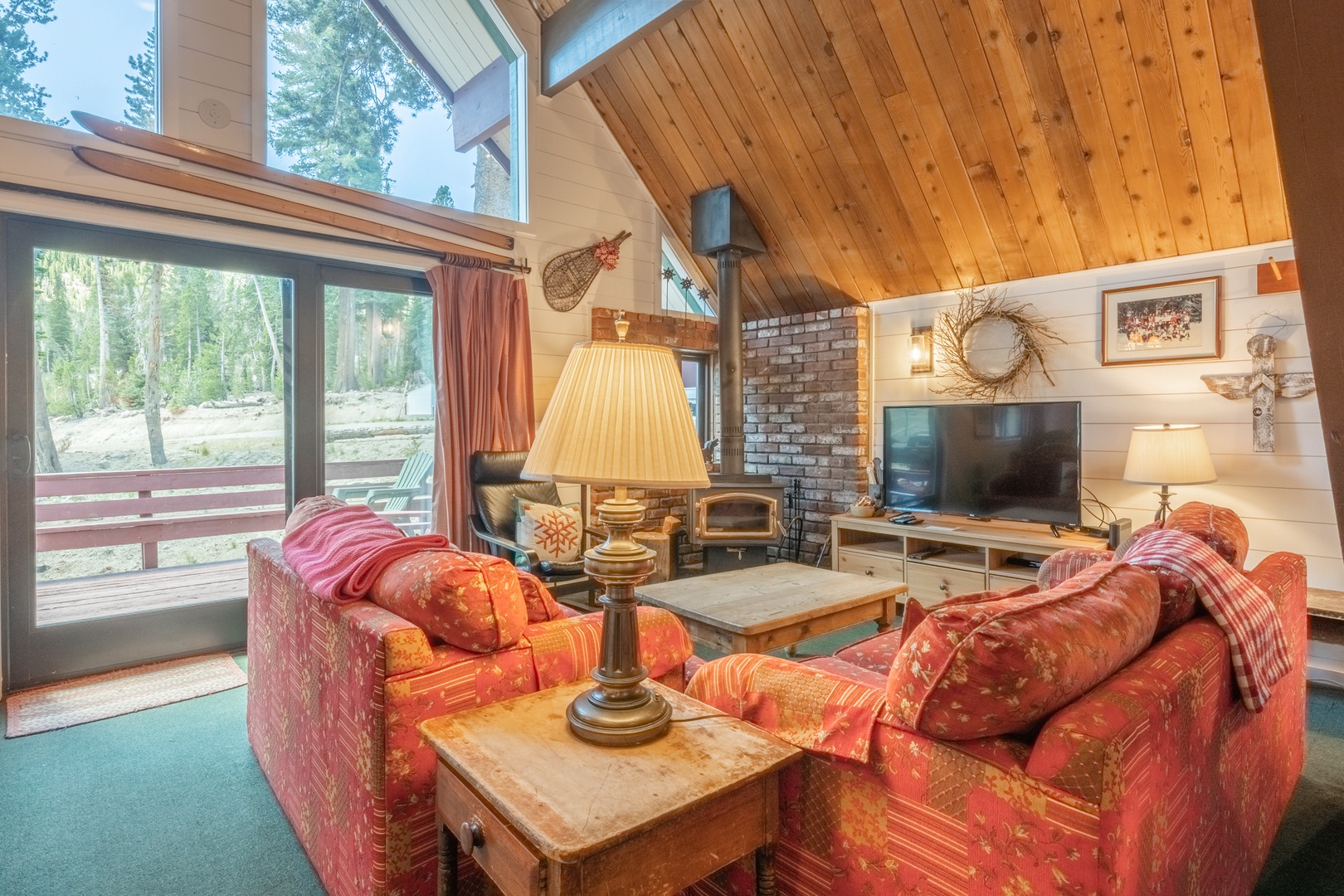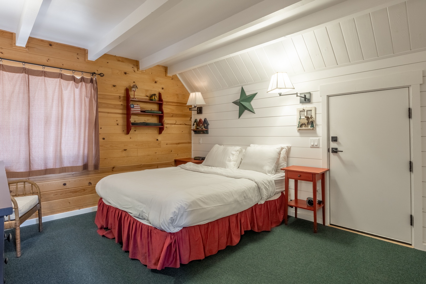 This charming Chalet is categorized as one of our Medium size units and enjoys a large deck and view of the mountain. It has 3 bedrooms and 2 bathrooms. Upstairs, there is 1 bedroom with a Queen bed and full bathroom. Downstairs, there is a full bathroom as well as 1 bedroom with a Queen bed, and another bedroom with 2 bunk beds with Twin beds, 4 twins total. Additionally, there is a Twin size rollaway bed if desired. You can enjoy the fully equipped kitchen, dining area, and living room with a wood burning stove and flat screen TV with Cable, DVR and DVD. This unit is Pet Friendly. You are allotted 2 parking spots in the winter. No limit in the summer.